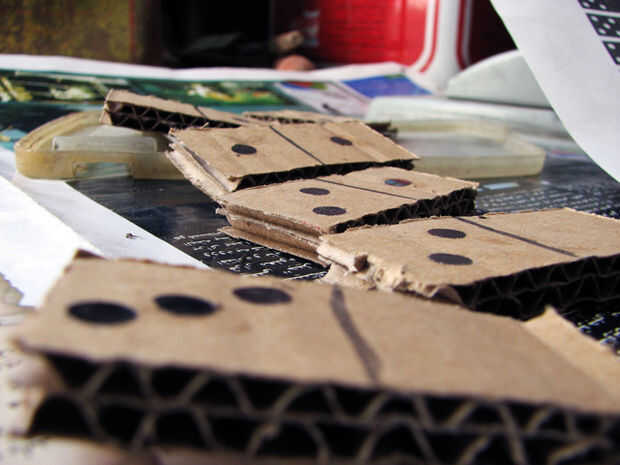 Como sobre el cuadro, pegar los círculos en el lado derecho e izquierdo de dominó. Recuerde que es un poco difícil y llevaría mucho tiempo, asi que tengan paciencia en el trabajo!