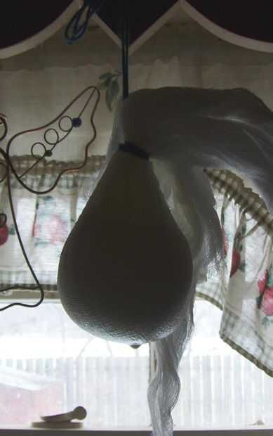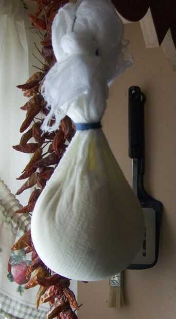 Paso 8: Presione más suero hacia fuera, volver a atar y vuelva a colgar la bola de queso.