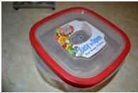 Asegúrese de encontrar un gran suficiente envase que se ajuste a medio rollo (o completo si eres ambicioso) de toallas de papel.  Encontré esta increíble envase para cerca de $4. Ya tiene un agujero en la parte superior! Estos pueden encontrarse en tiendas de abarrotes u otras tiendas buenas.