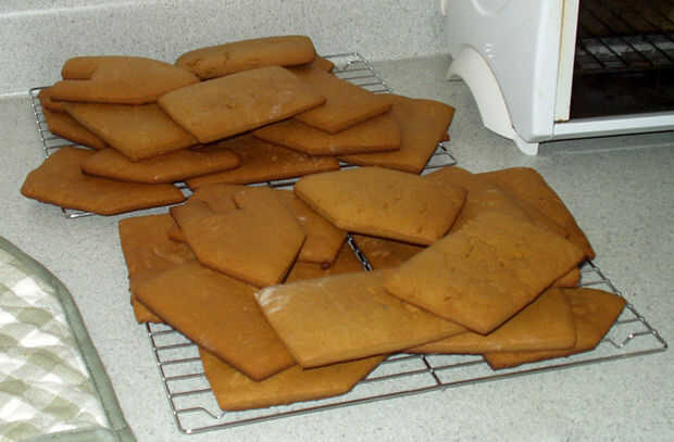 Hornear piezas de 10 a 15 minutos hasta que doren ligeramente alrededor de los bordes. Pan de jengibre será suave así que déjela enfriar en la bandeja durante 5-10 minutos. Retire cuidadosamente piezas al horno de pan y enfriar completamente sobre una rejilla.