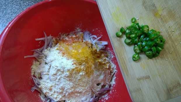 Cómo hacer cebolla Pakoda (2 / 5 paso)