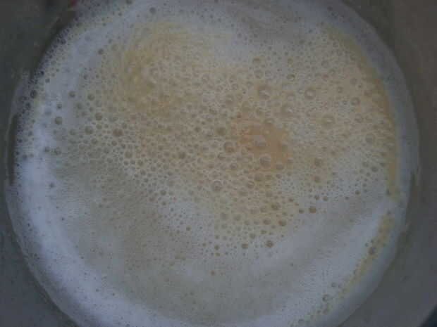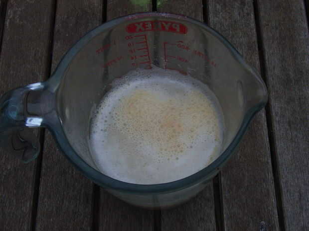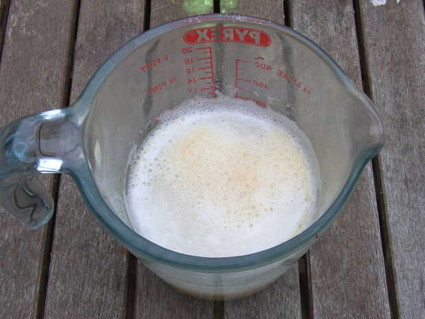 Después de unas horas en la tibia, la levadura revive espumoso. Debe ser nublado y visiblemente mudanza con el dióxido de carbono es liberado. En este punto está listo para añadir a la hierba, que tendrá que ser enfriado, antes de poder agregar la levadura.