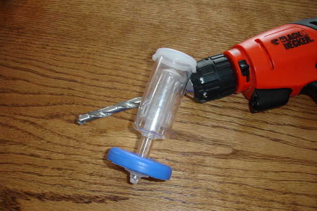 Usé una bolsa de aire comercial, pero podría forme una bolsa de aire de una pieza de vinilo transparente tubo, de un extremo a la tapa y el otro extremo en un vaso de agua. Las esclusas de aire comerciales son sólo $1 o menos y se incluyen en los kits del arrancador. Perforé un orificio de 3/8" en la tapa de la botella de agua. El bolsa de aire se ajusta perfectamente en el agujero. La idea es dejar que el dióxido de carbono producido durante la fermentación escape manteniendo el aire exterior penetre.