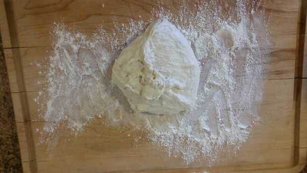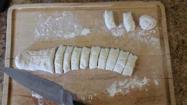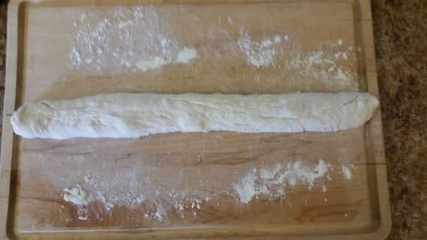 1. en un tablero de cocina ligeramente enharinado, el rodillo la masa en un largo registro de alrededor de 1 pulgada de diámetro.