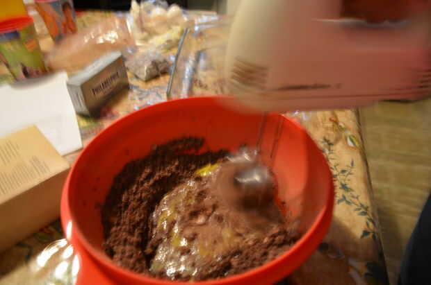 Preparar la mezcla de brownie como dirigido por su buzón. (Se muestran imágenes que se corresponden con la mezcla de brownie especial que estamos usando. Si la mezcla tiene diferentes instrucciones de lo que está en la foto, caso omiso de las imágenes y seguir haciendo tus propias cosas.) Vierta la mezcla de brownie en la.