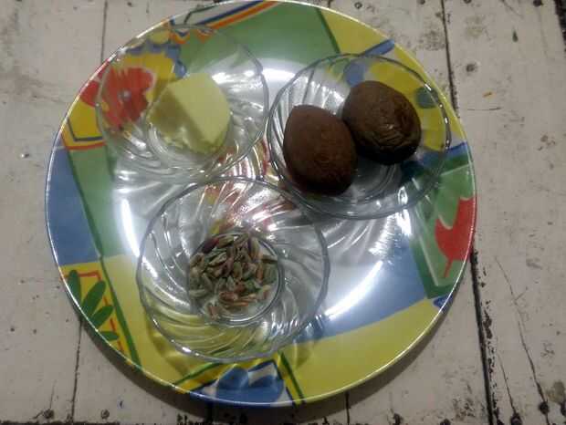 1. 4-5 chikoo pulpa (pelar la piel y rejilla)