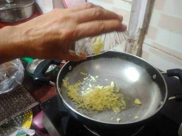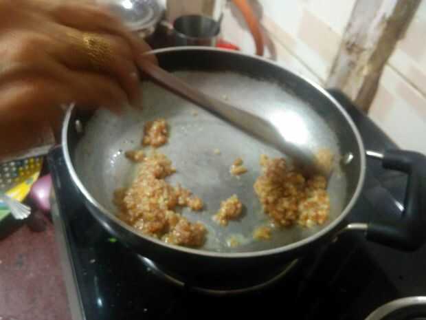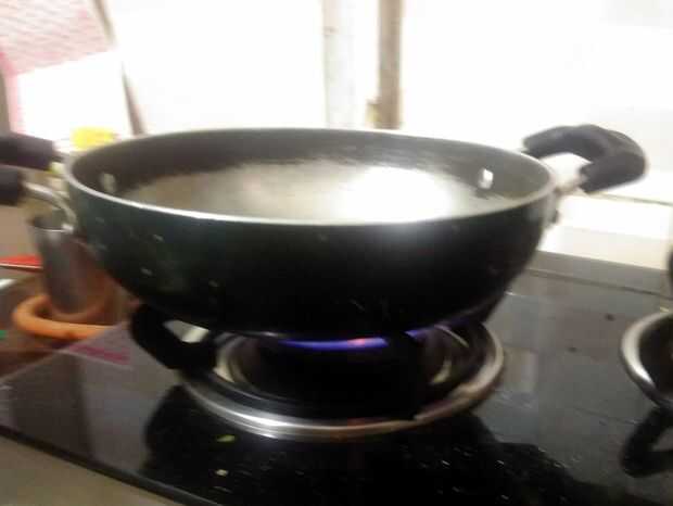 1. calentar una sartén a fuego lento y poner chickos de puré.
