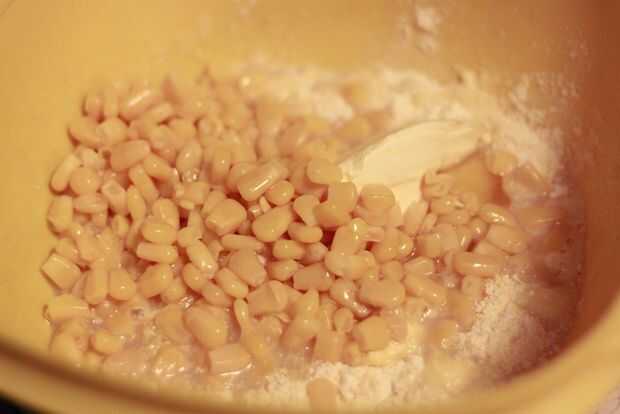 Ahora mezclar la mezcla de pan de maíz, maíz, mantequilla, leche y óvulo. Yum!