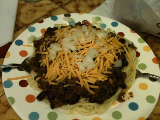 Este es un estilo muy distinto de Chile el Chile tradicional estilo suroeste, pero personalmente creo que es mejor waaay. Sé que hay puristas de Chile hacia fuera allí, pero en serio, estas cosas a probar y no te arrepentirás. Tradicionalmente esto se hace sólo con habas de riñón, pero me gustaría añadir una variedad de frijol para darle sabor un poco más. Y sí, es el spaghetti en el Chile. Es cómo la sirven en Skyline Chili (lugar famoso que sirve este estilo de Chile), en Cincinnati. Confíe en me...yummm!