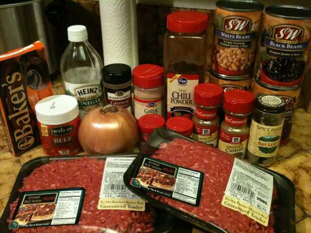 -4 latas de frijoles, enjuagados y escurridos (me gusta usar 2 latas de frijoles rojos oscuros, una lata de frijoles negros y una lata de alubias)