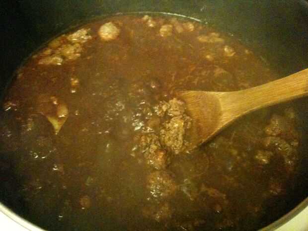 -Después de refinada la salsa y el caldo, añadir las tres cucharadas de vinagre blanco y 1/2 cuadrado de Chocolate sin azúcar del panadero a la mezcla.
