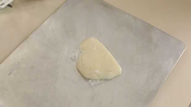 Ahora nos envuélvalo para arriba suavemente, no presione a duro, no queremos que la envoltura plástica para ser demasiado difícil sacar el chocolate. Ahora lo dejamos descansar a temperatura ambiente durante aproximadamente 12 horas. Si estás en un apuro, puede ponerlo en la nevera por unas 3 horas. Cuando usted quiere usarlo, será difícil, por lo que se romperá de una pieza que desea utilizar y luego amasar en la mano hasta que consigue agradable y suave y parecerá plastilina. Luego Diviértete con él y modelo a