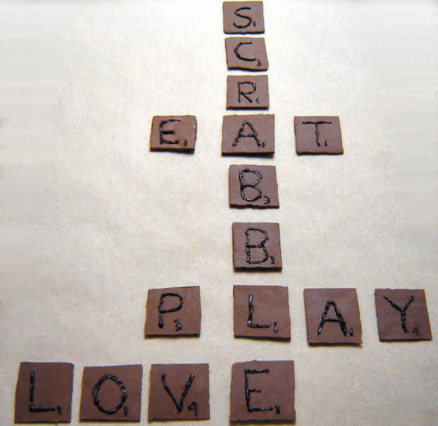 un regalo de chocolate perfecto para Scrabblephile en tu vida. Las tejas de chocolate con leche con letras de chocolate oscuro pueden ser utilizadas para deletrear nombres, deseos de cumpleaños o aniversario, o incluso algo fofo como te amo. Y son realmente fáciles de hacer también.