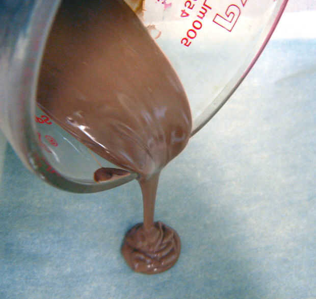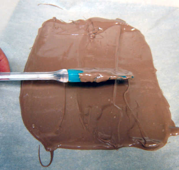 • Extienda el chocolate uniformemente en forma de cuadrado/del rectángulo, no extenderlo demasiado fino (debe ser aproximadamente 1/8-1/4 pulgada de espesor)