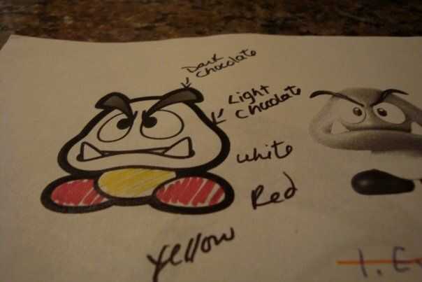 -Su diseño de lo que quiere trazar en el papel de cera (estoy usando una imagen de Goomba) le está mejor apuesta es seguir con imágenes fácil y eventualmente pasar a los más.