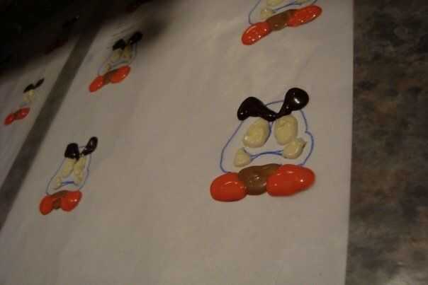 -Una vez rastreado varias imágenes en el papel de cera, es hora de empezar a derretir tu chocolate. El mejor método es el microondas. Tenga en cuenta, ya que está haciendo múltiples creaciones de la misma imagen, es mejor para cada creación uno tras otro con el color del chocolate que ha derretido en aquel momento.