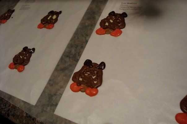 -Dejar reposar unos minutos. (Encontrar si utiliza chocolate con leche, tarda mucho más tiempo para convertirse en sólido y deberá transferir a la nevera)
