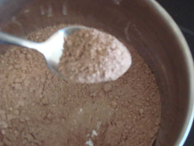 Añadir el cacao en polvo y azúcar. Si desea más dulce chocolate (esto es un poco amargo) agregar poco más de azúcar.