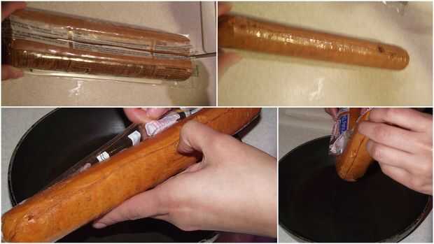 Ahora toma un chorizo-link y abrir por corte abierto con un cuchillo.
