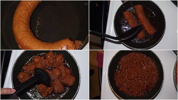 Descarga el chorizo directamente sobre una sartén antiadherente.