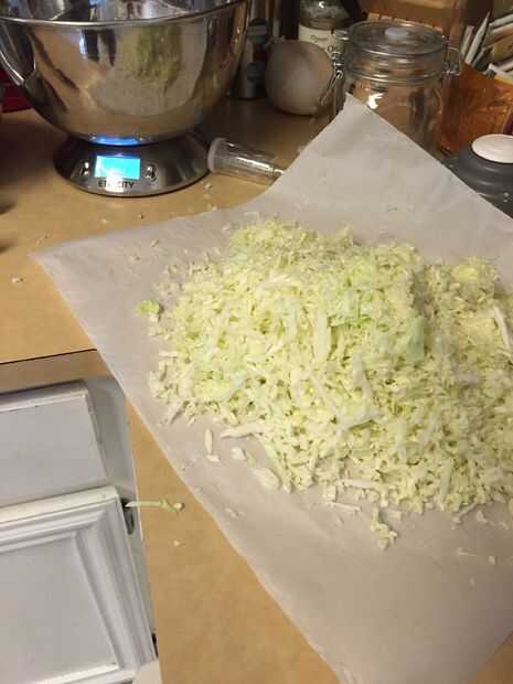 Yo uso un pedazo de papel pergamino para coger la col (hace para menos limpiar y más fácil de poner en el tazón de fuente después de pesaje).