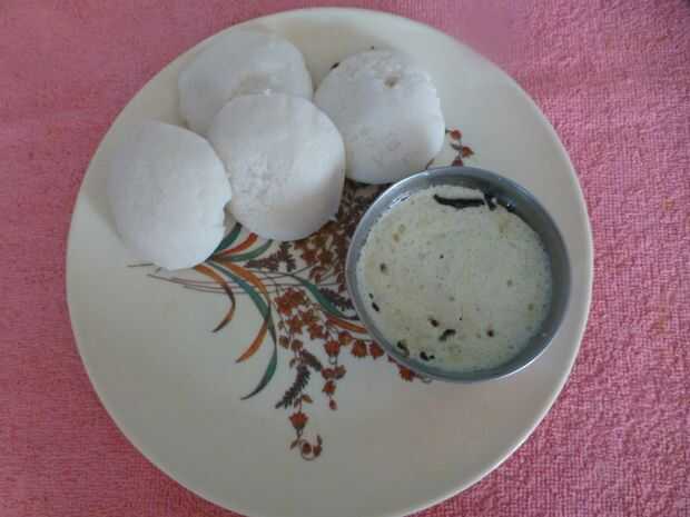 Disfrutar de la salsa picante del coco con Idli o Dosa
