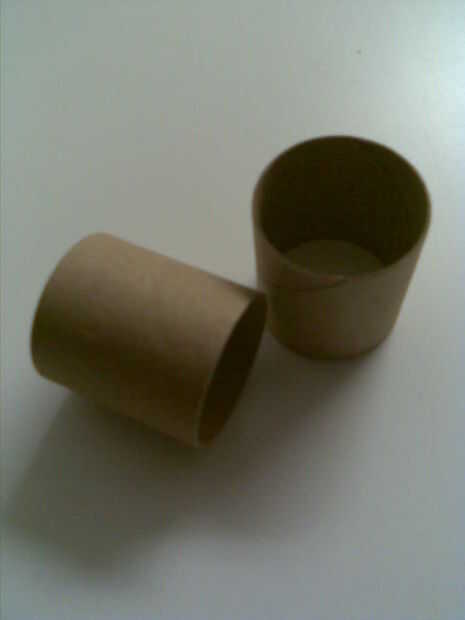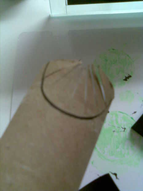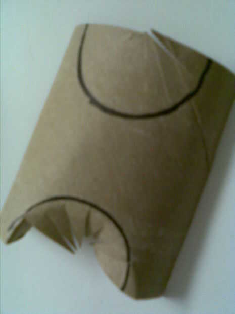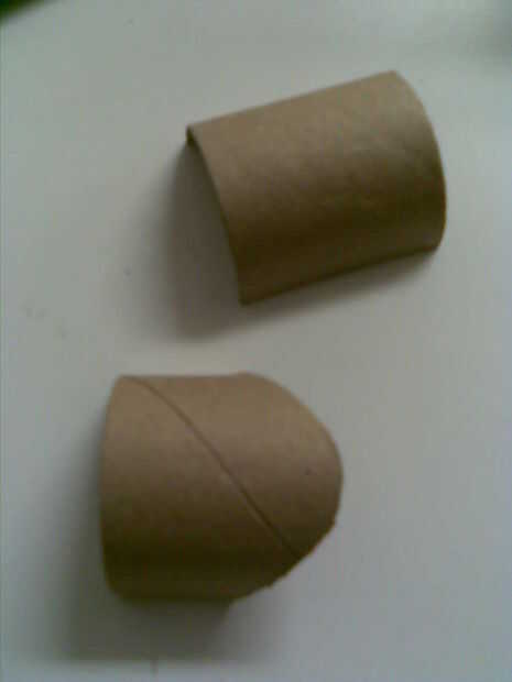 Ahora tomar uno de los restantes tubos de cartón y cortarlo por la mitad de lo largo y redondear uno de los extremos de cada medio (ver imagen quinto.)