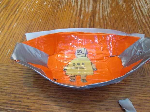 robot en algunos de papel y grabada la imagen de la bolsa con alguna cinta de embalaje.