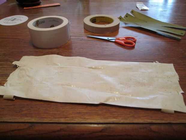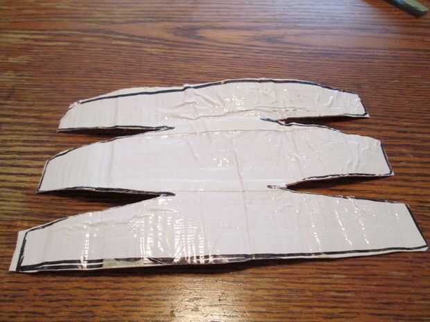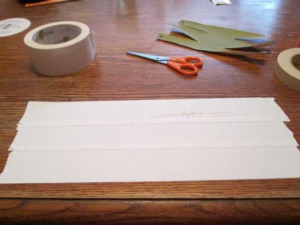 Al principio tomé 3 trozos de cinta de 12" pulgadas longitud y poner dos trozos de cinta adhesiva en la parte posterior de ellos