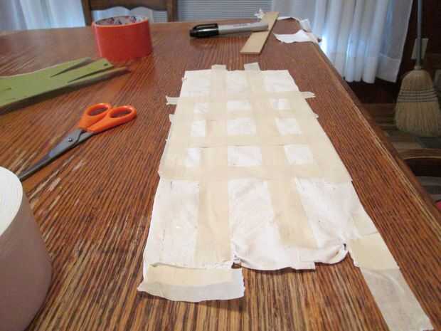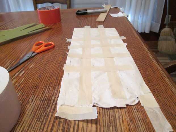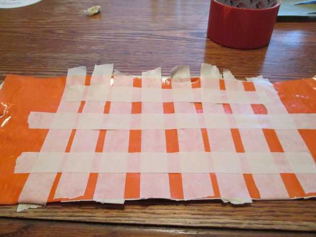 Entonces tomé más cinta adhesiva cinta adhesiva no estirar y ponerlo en un patrón entrecruzado para