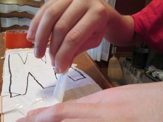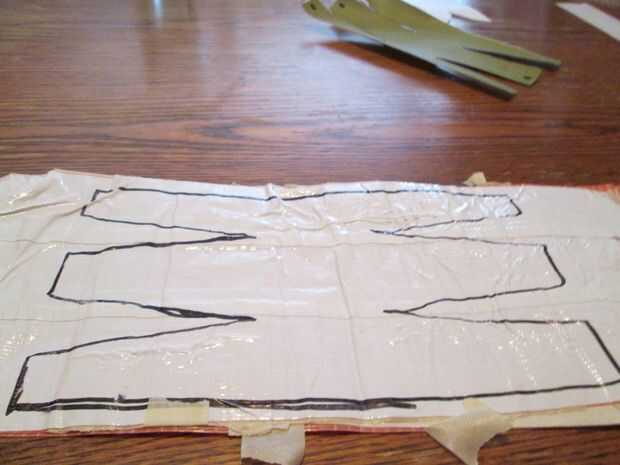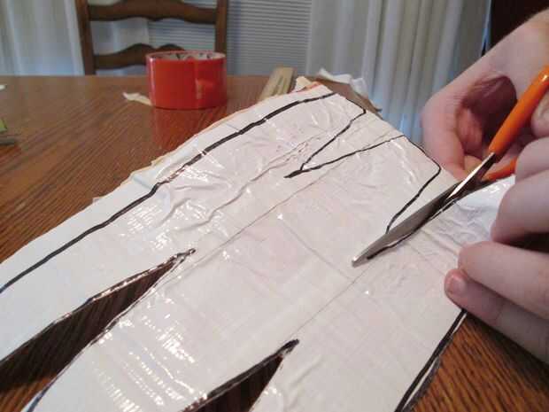 para mantenerlos juntos tomaron un sharpie y remontar el patrón de la hoja de la cinta del conducto.