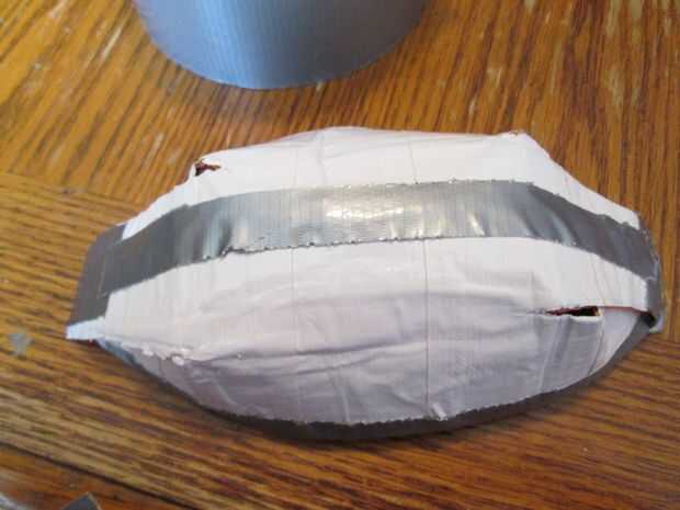 Pongo algunos más cinta adhesiva en los bordes de la bolsa para asegurarse de que su fuerza suficiente para ser limpiado alrededor de cada vez el trebuchet de la manija es despedido.