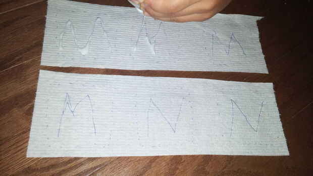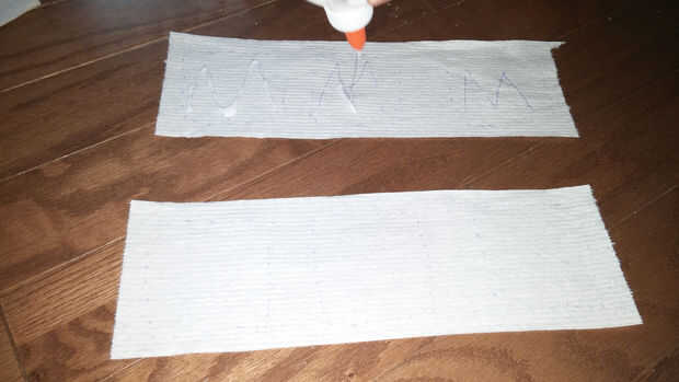 Extienda el pegamento con los dedos para rellenar el área de las líneas de puntos, o su mamá para hacerlo porque el pegamento es "demasiado icky pegajoso"...