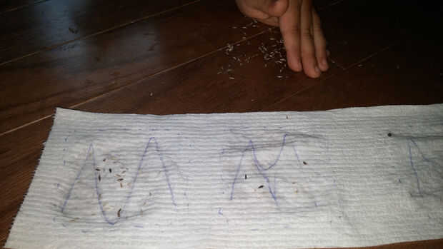 * La aspersión de semillas debe ser mucho más dispersa que lo que tengo aquí, pero mi ayudante estaba teniendo tan divertido con la aspersión... Además puedes ver nuestro pequeño percance de abrir el paquete, por lo que se podría utilizar así para arriba!