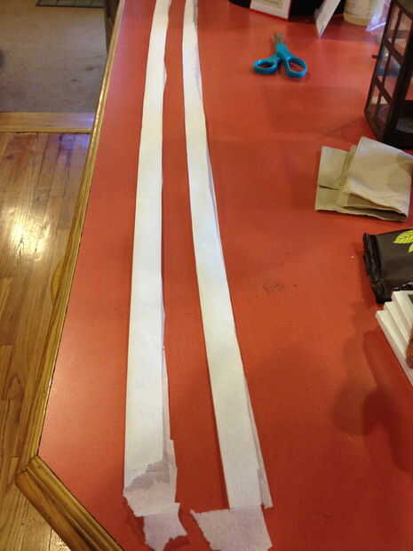 Cortado papel higiénico a lo largo y dobla las mitades a lo largo.