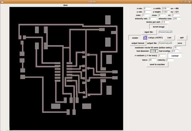 Para utilizar el software de cad.py que va con un montón de las máquinas de FabLab, guardar tu circuito como un PNG. Si usas águila como su software de diseño, salida de las capas que desea utilizar como imagen monocroma y utilice un 500 dpi para asegurarse de que obtener suficiente resolución para perfilar la parte.