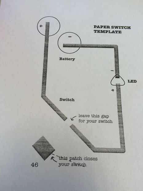 Objetivo: Para crear un circuito de papel que se enciende un LED y es alimentado por una batería.Nivel de grado: 3Tiempo: 40 minutosMateriales: Página del circuito de papel (adjunto arriba con o sin interruptor), cinta de cobre de la hoja (si es posi