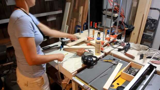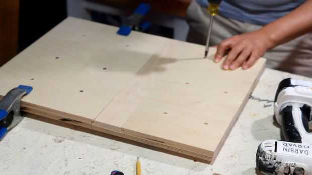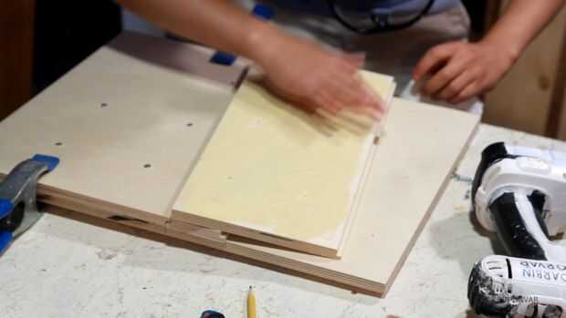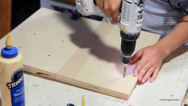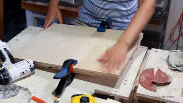 Luego alinee el deslizador del centro corte D, abrazadera y ajuste las piezas laterales. Primero varios orificios en dos de las piezas laterales, volver a colocar y atornillar abajo. Luego tomar los tornillos, colocar pegamento y atornillar las juntas otra vez. Es importante fijar en primer lugar, para establecer los agujeros antes de pegar, porque hace mucho más fácil a todo, o bien el pegamento tiende a mover todo, ahora los tornillos pueden encontrar los orificios existentes mucho más fácil.
