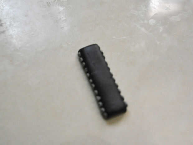 Luego córtalo en un tamaño medio de la misma. Un lado va a ser el chip y el otro va a ser un zócalo del IC. (ver imagen 2)