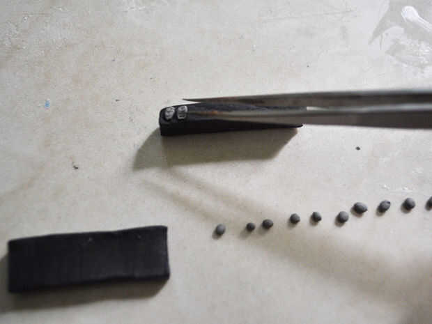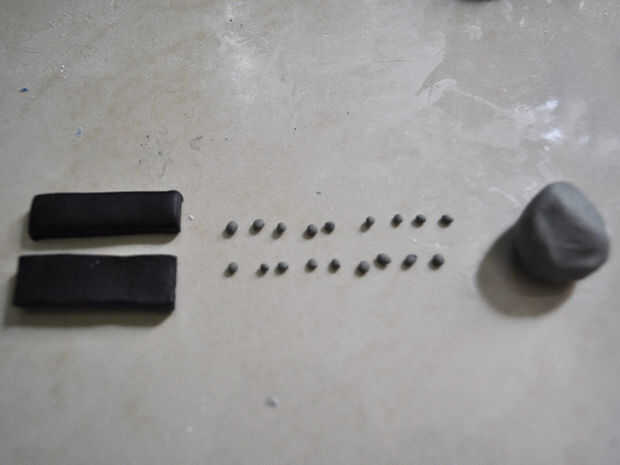 Hacer un montón de bolas de arcilla gris. Va a ser a los pies de la IC. (ver imagen 3)