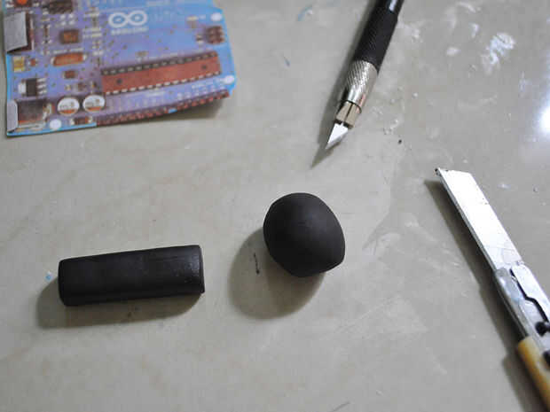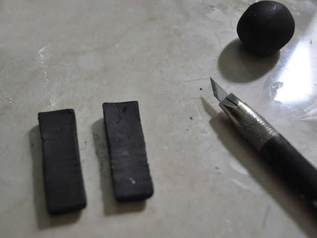 Tomar el barro negro. Calentar la arcilla con las manos. Hacer un grueso rectangular en forma de un chip real en Arduino. (ver imagen 1)