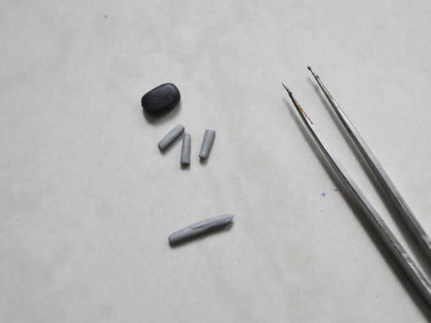 -Caliente el barro negro con las manos. Luego hacer base de forma rectangular un poco para los pasadores.