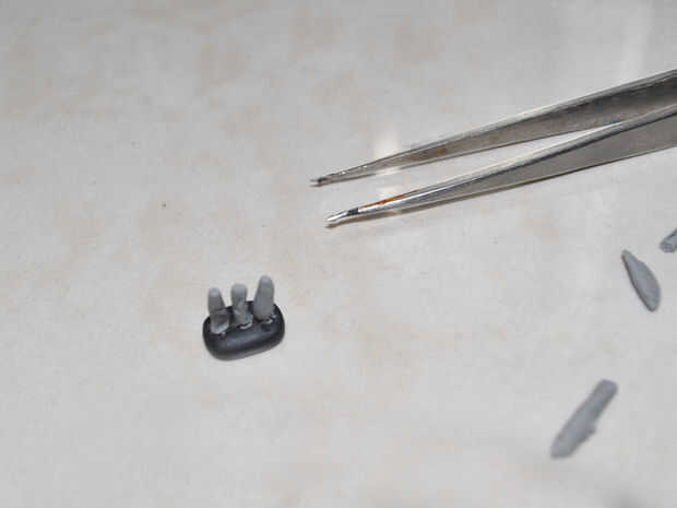 -Poner las clavijas en la base de los pernos, empujar suavemente la arcilla de pines así que pegajosa entre sí. (ver imagen 2)