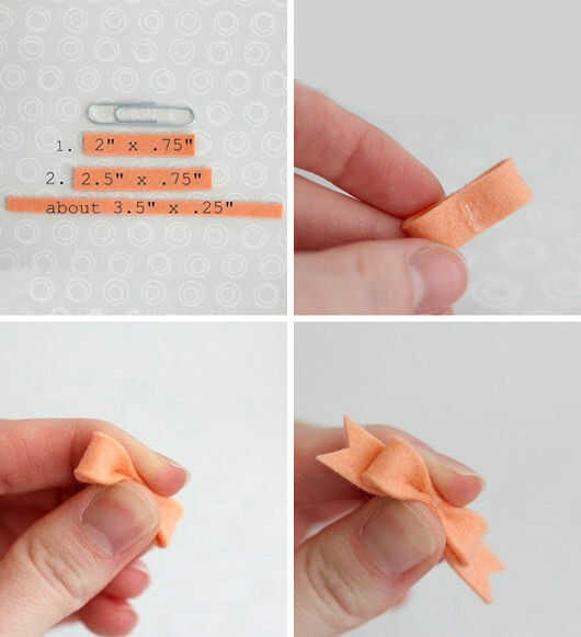 Cortar tres tiras de fieltro como los tamaños de muestra en el cuadro 1. Doblar el fieltro más corto; la parte media del fieltro del pegamento. Apriete la forma con los dedos. Cortar los dos extremos de la segunda más corta fieltro para una forma del triángulo; pegar al otro lado de la exprimida de fieltro.