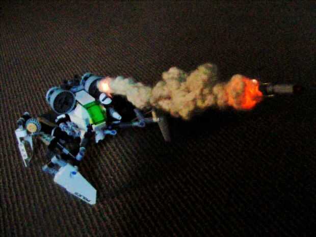 (Utiliza luces de funciones de energía de LEGO para las piezas de fuego naranja del humo)