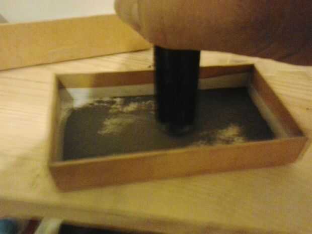 Ahora necesita reducir los trozos grandes al polvo. Usé la parte inferior de un destornillador, ya que es redondo y lo más importante, que está hecha de plástico. También utilicé una caja de cartón. NUNCA USO DE METAL COMO CHISPAS PODRÍAN ENCENDER EL POLVO!!!!!!