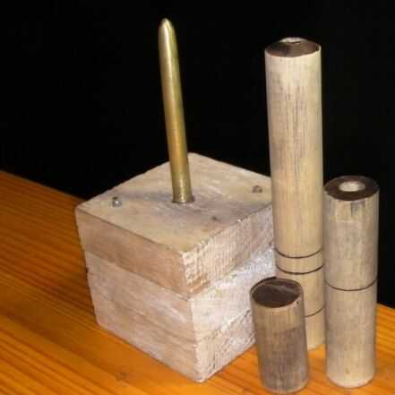 espigas de 3/4 diámetro entonces se utilizan para formar a las estibas. Una prensa del taladro, es una tarea sencilla para perforar los orificios a través de los más largos dos Pisones para el eje a. Las siguientes longitudes de espiga deben ser utilizadas para los tres Pisones: 5, 3 1/2 pulgadas y 2 pulgadas.