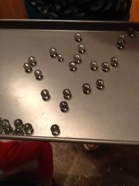 Poner las canicas en una bandeja para hornear galletas (o pasteles), no usar canicas de juguete totalmente coloreado no puede ver las grietas! Utilice la clase con que se llene floreros!
