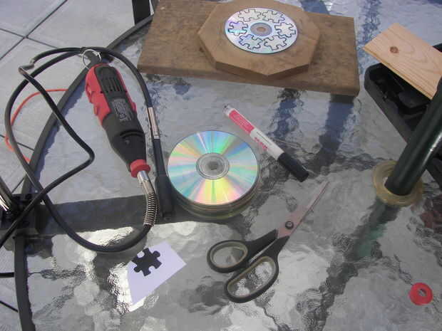 Además, me di cuenta de que diferentes marcas y tipos de CD / DVD reacciona diferentemente a las herramientas de talla. Algunos de ellos perdieron su respaldo, o separaron en dos capas diferentes. Hacer más piezas que necesitas y esperar que algunos de ellos no salen de la manera que quieras.