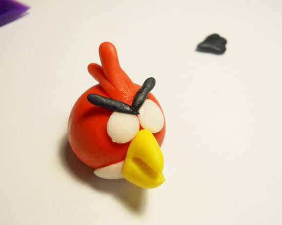Por último el pegamento en las cejas y el punto de la frente. Generalmente recurro a los alumnos de este tipo con un marcador comestible pero se pueden utilizar pequeños puntos como lo hicimos para el pájaro rojo.